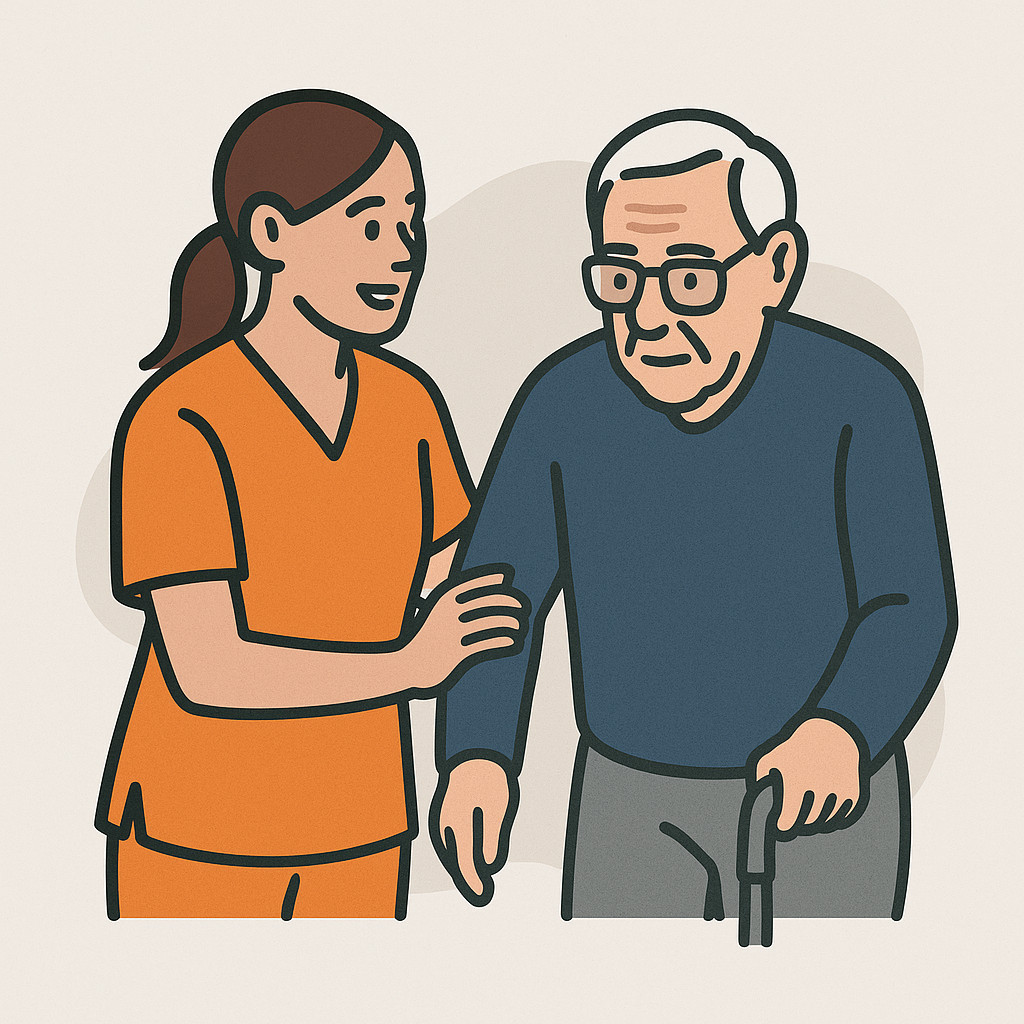 - Aide aux gestes de la vie quotidienne (repas, toilette, déplacements).
